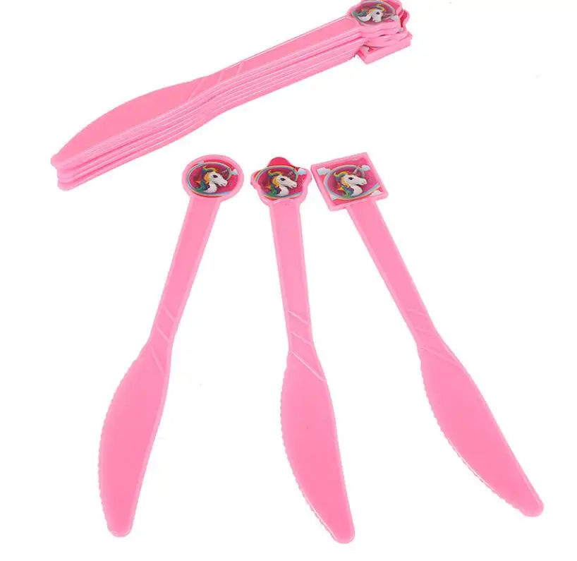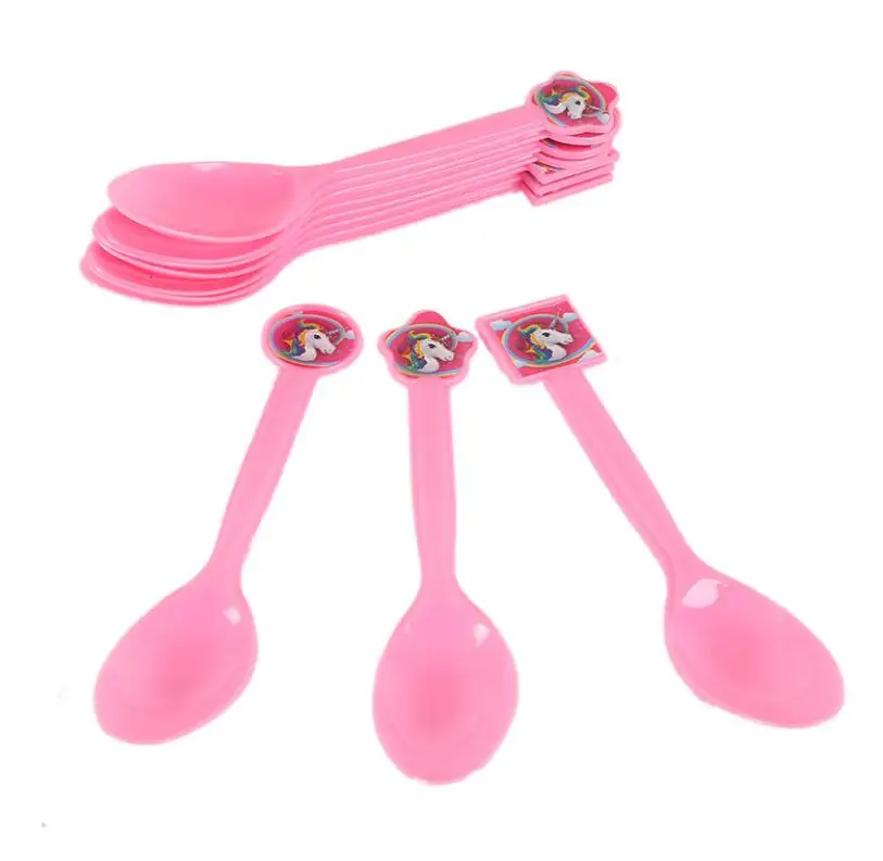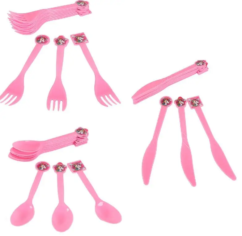 32852275153 10PCS/lot unicorn Cartoon Party Tableware Fork spoon Knife Kid's Birthday Party Decorations Supplie