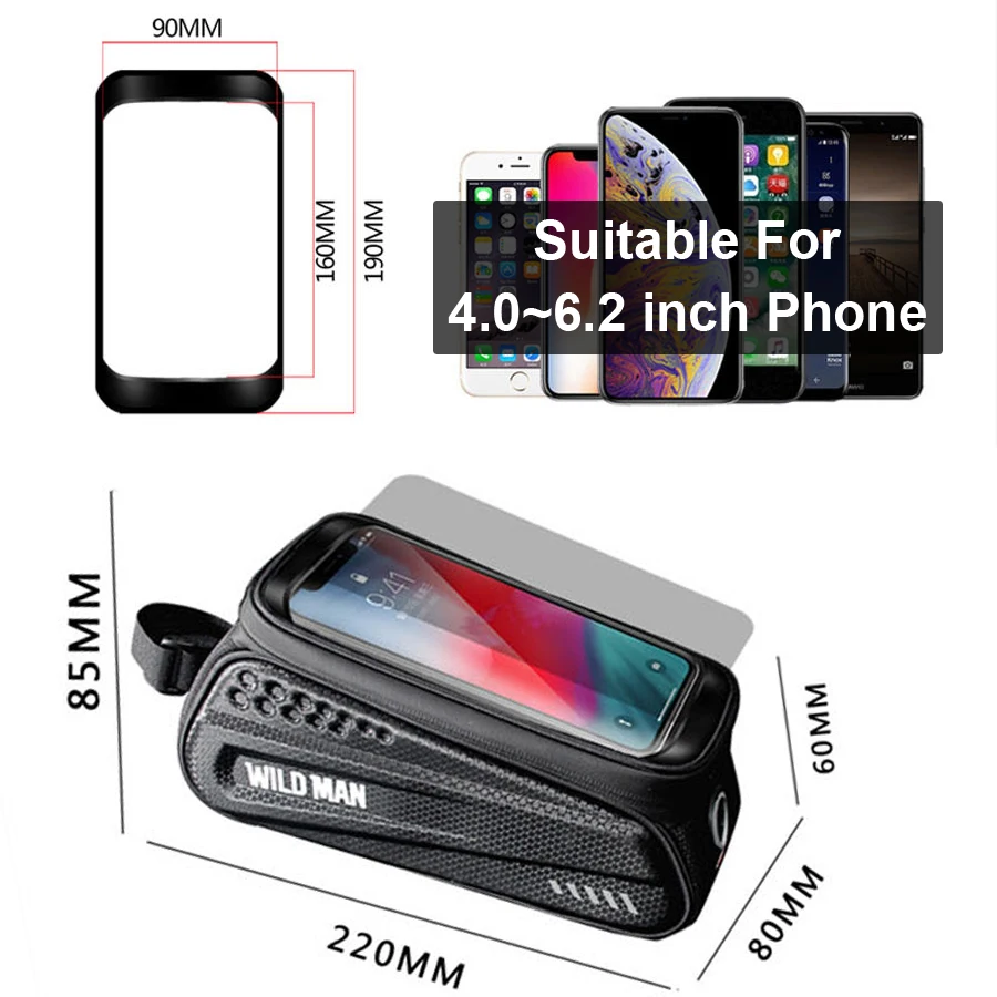 4.00E+12 WILD MAN Rainproof Bicycle Bag Frame Front Top Tube Cycling Bag Reflective 6.5in Phone Case Touchsc